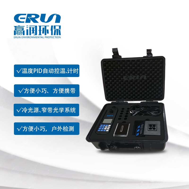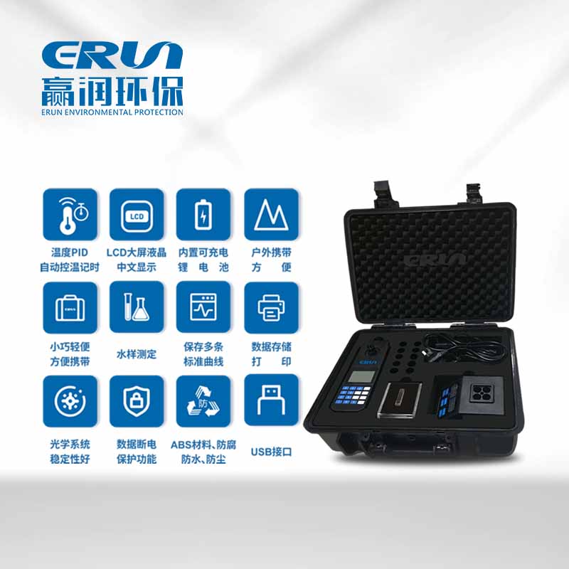 贏潤環(huán)保研發(fā)、生產(chǎn)的便攜式水質(zhì)COD分析儀ERUN-SP-COD810P光學(xué)性能穩(wěn)定,操作方便直觀,USB可連電腦打印,體積小巧、方便攜帶,控溫精度高達(dá)±0.5℃,可以快速對(duì)水質(zhì)化學(xué)需氧量COD進(jìn)行測定。